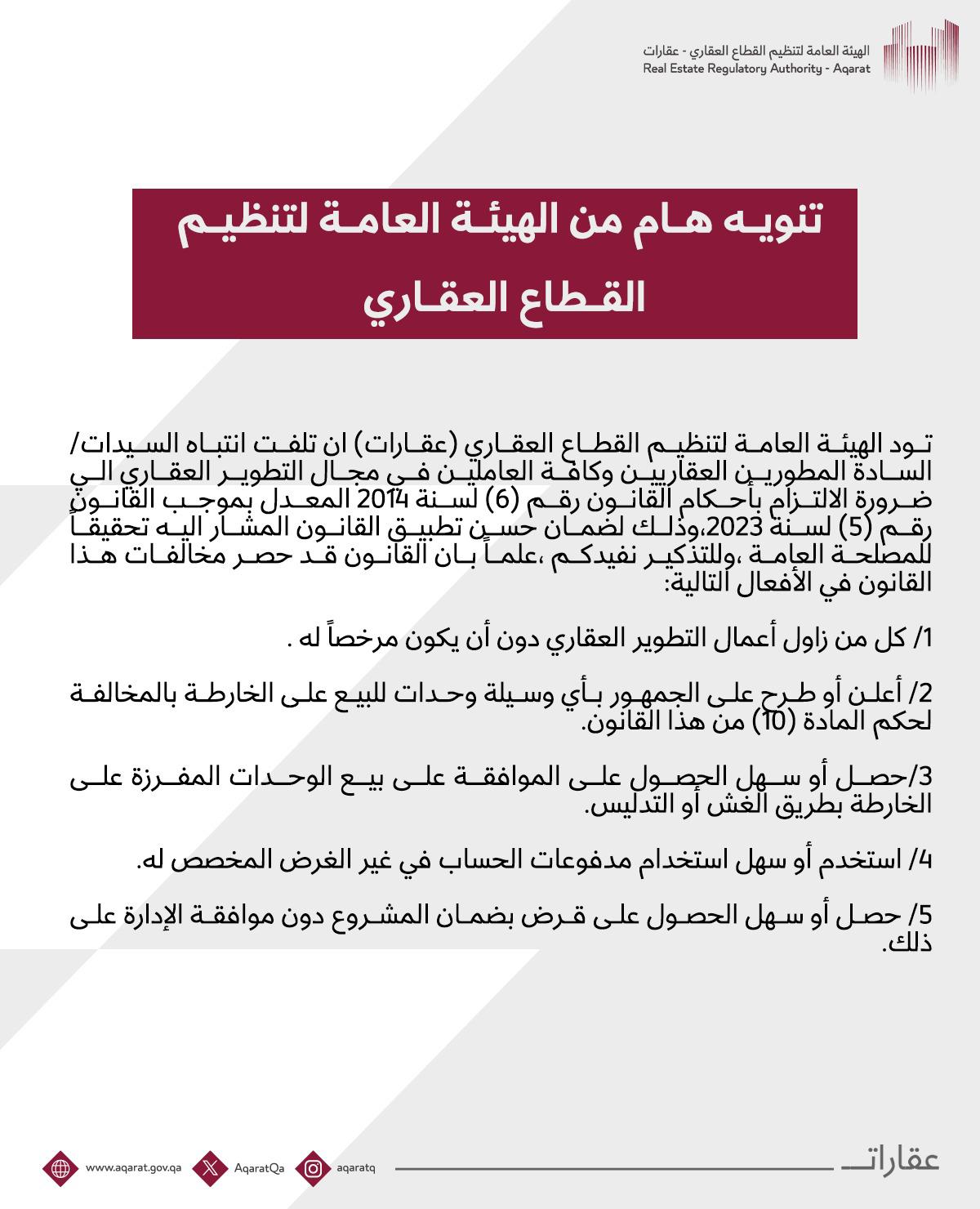 تنويه هام من الهيئة العامة لتنظيم القطاع العقاري